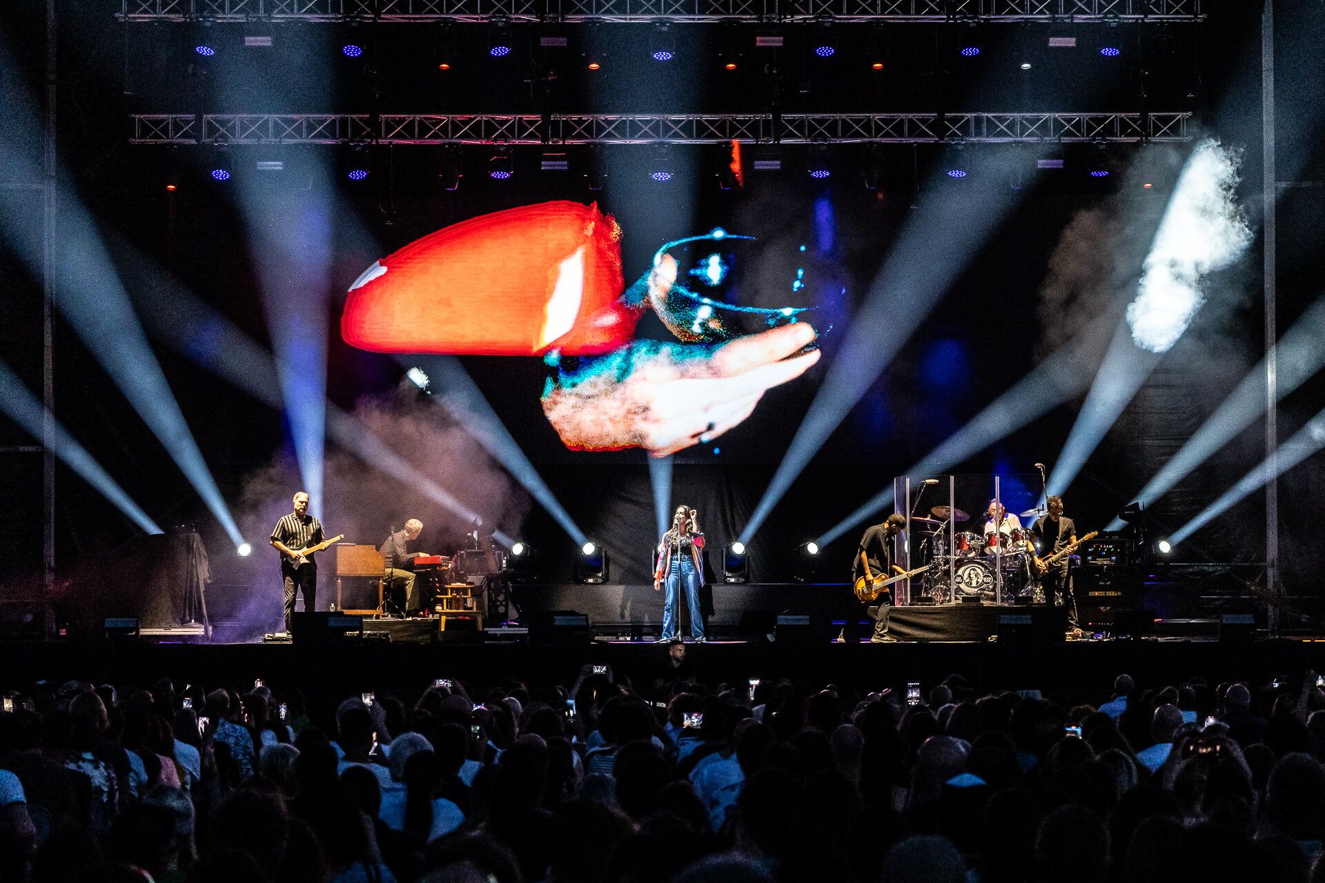 Minuta eppure enorme, Alanis Morissette ha riempito il palco con la sua forza e il suo carisma. Niente scenografie audaci o allestimenti strabilianti: solo energia, emozione, musica e voce. Anche nel look la cantante ha puntato all'essenzialità: una pioggia di capelli lunghi sciolti sulle spalle, jeans e top nero, una camicia coloratissima dalle chiare vibes anni Novanta. Per "Hands Clean" ha imbracciato una chitarra elettrica oro glitterata.