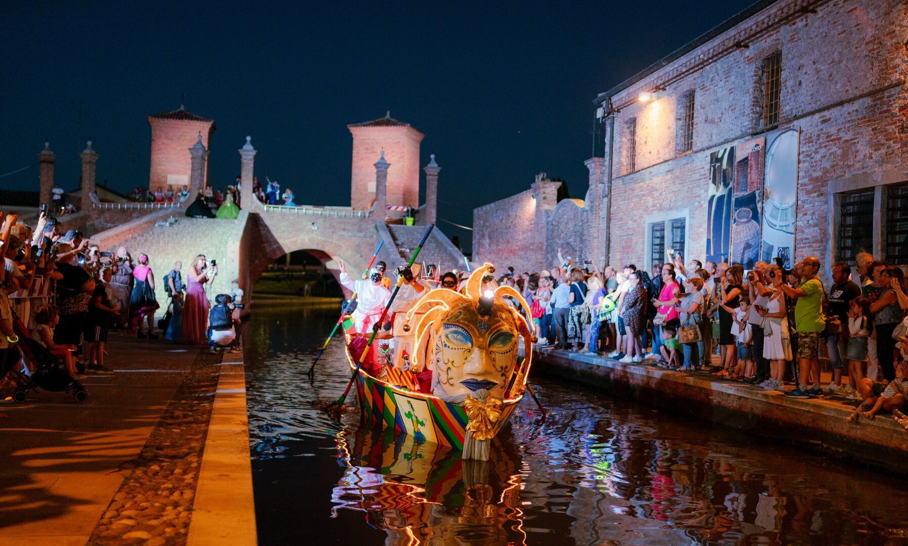 UNESCO DA DIECI ANNI - Sabato 28 giugno 2025 nei canali della cittadina lagunare scivoleranno dodici barche cariche di sogni e creatività, ognuna con il suo tema, la sua storia da raccontare. La magia del Carnevale sull’Acqua inizierà alle 21 dal monumento che è il cuore pulsante di Comacchio: i Trepponti. Quella meraviglia architettonica del Seicento che sembra uscita da un dipinto e che farà da cornice naturale a questo teatro galleggiante. Le barche scivoleranno lungo i canali mentre la città si trasforma in palcoscenico, con danze, musiche, luna park e concerti che riempiranno le calli e le piazzette. Questo evento celebra anche i trent'anni del riconoscimento UNESCO di Ferrara e i dieci della riserva MaB del Delta del Po. Due imbarcazioni porteranno in scena il tocco d'artista di Remo Brindisi, il maestro che aveva saputo reinventare i costumi rinascimentali con quel pizzico di innovazione che trasforma la storia in spettacolo.