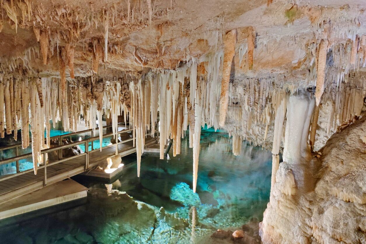 CRISTAL & FANTASY CAVE, Isole Bermuda - È una fra le maggiori attrazioni delle Isole Bermuda. All'interno, stalattiti e stalagmiti formate da rocce calcaree e il lago Cahow, dalle acque cristalline, regalano uno scenario surreale. Sul lago c'è anche un ponticello che consente di osservare, in alto, stalattiti gocciolanti dalla volta e, in basso, tra le acque limpidissime, le stalagmiti che sorgono dal pavimento della caverna.