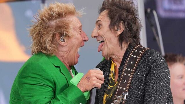 Rod Stewart, 80 anni, ha conquistato Glastonbury sul Pyramid Stage domenica pomeriggio ed è stato raggiunto sul palco da Ronnie Wood, chitarrista dei Rolling Stones ed ex compagno di Rod nei Faces negli anni 70. Una mini "reunion" che ha entusiasmato il pubblico. I due si sono esibiti in 'Stay With Me' duettando come se il tempo non fosse mai passato.