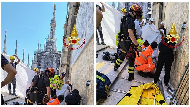 Una turista cinese, originaria di Shanghai, di 66 anni è stata soccorsa intorno alle 11:45 dal personale SAF dei vigili del fuoco di Milano mentre si trovava sulla Terrazza principale del Duomo in compagnia del figlio e del nipote. La donna, per via del forte caldo, ha perso improvvisamente i sensi causa anche un evidente stato di disidratazione. Soccorsa anche dai sanitari del 118, la turista asiatica è stata imbarellata con la toboga in dotazione al SAF e trasportata per le cure del caso al Policlinico di Milano in codice giallo.