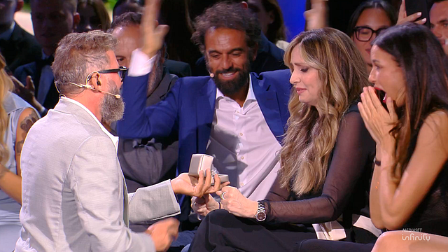 Dopo aver presentato il suo nuovo brano ispirato all’esperienza vissuta sull’Isola, Paolo Vallesi sorprende tutti inginocchiandosi davanti alla compagna Sara Flaherty. Sulle note del suo celebre successo "La forza della vita", terzo classificato tra i "Big" al Festival di Sanremo 1992, le chiede di sposarlo. I due si abbracciano commossi, mentre lo studio esplode in un lungo e fragoroso applauso.