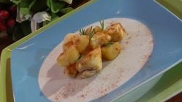 Ingredienti: un petto di pollo, due patate bollite, olio d'oliva, sale, rosmarino, paprika dolce.