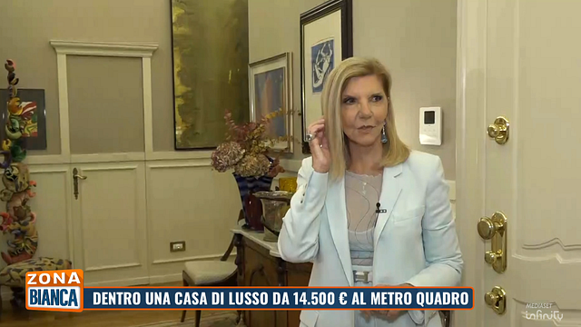 A mostrare l'appartamento alle telecamere del programma di Rete 4 è stata Maurizia Serra della società "Via della Spiga Wonderful House": Siamo in un appartamento di 200 metri quadrati - dice mostrando lo stabile -, l'ingresso ci accoglie con diverse opere d'arte. La particolarità di questa casa è quella di avere mantenuto lo stile e il restauro conservativo di quello che si poteva fare, oltre ad avere tutta una componente tecnologica moderna"