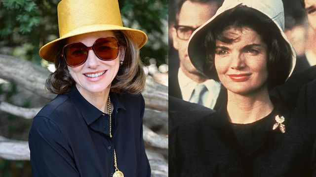 La star di Hollywood, 56 anni, indossa un outfit total black con grandi occhiali da sole e un bucket hat - un cappello a secchiello - giallo. Una mise ispirata ai look discreti ma dall'allure chic e senza tempo di Jackie, che sono a ancora oggi un'inesauribile fonte di ispirazione.