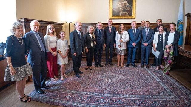 Proprio per l’alto valore simbolico e culturale del progetto, Mario Arlati è stato insignito di un’onorificenza ufficiale dal Segretario di Stato alla Cultura, Teodoro Lonfernini. L’artista è stato poi ricevuto in Udienza ufficiale dagli Eccellentissimi Capitani Reggenti, Denise Bronzetti e Italo Righi, in un clima di grande partecipazione e riconoscenza. Insieme all’artista, erano presenti anche i suoi familiari, Emanuele Lumini dell’Università degli Studi di San Marino – autore del video emozionale che racconta la genesi dell’opera – e i vertici di LCS, con in testa l’Amministratore Delegato Michele Gualandi.