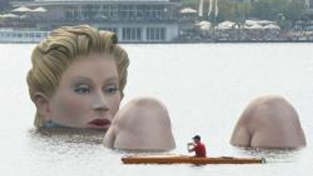 In un affluente dell'Elba ad Amburgo, in Germania, è affiorata una gigantesca donna. Si tratta di un'opera d'arte alta 5 metri, composta di polistirolo e acciaio, realizzata dalla locale accademia di arte. Una struttura che potrà essere visitata fino al 12 di agosto passandole vicino con una barca. Qualcuno l'ha anche definita una sirena ma la presenza delle enormi ginocchia che spuntano dall'acqua fanno pensare a tutt'altro.