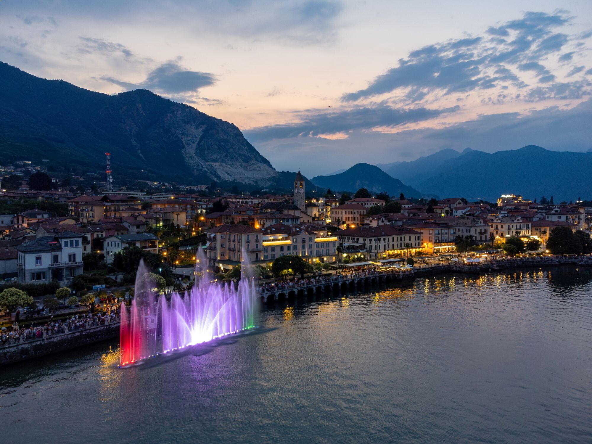 A BAVENO, IMPONENTI FONTANE LUMINOSE - Le rive di Baveno sono il palcoscenico di uno straordinario spettacolo di fontane luminose, che quest’anno si estenderanno sul lago per quaranta metri, superando di ben dieci metri la lunghezza della scorsa edizione. Ogni sera, il lungolago si anima con tre spettacoli di luci, colori e musica, trasformando l’acqua in un’incantevole danza che lascia senza fiato residenti e visitatori.