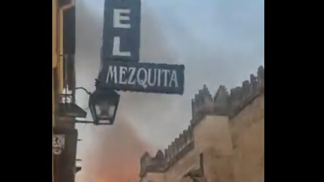 Nei video pubblicati sui social si vedono le fiamme divampate all'interno del monumento: le colonne di fumo sono visibili da diversi punti della città, dove oggi la temperatura ha raggiunto i 39 gradi. Le prime ipotesi indicano un cortocircuito in una spazzatrice, una macchina elettronica per la pulizia, situata nella Cappella Almanzor.