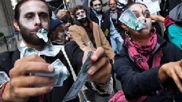 Continua il pressing dei manifestanti di Occupy Wall Street, ancora più motivati dopo gli scontri con la polizia avvenuti durante il weekend. L'organizzazione ha spinto i suoi membri a indossare vestiti da zombie per rappresentare chi lavora per le grandi aziende. La campagna contro l'avidità e il capitalismo, ormai entrata nella sua terza settimana, continua a richiamare nuovi adepti e l'attenzione dei media.