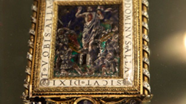 Negli smalti e nell’oreficeria dai Visconti agli Sforza nel Ducato di Milano andiamo cercando dunque il filo di uno stile lombardo e il lento mutamento del linguaggio, apprezzando la ricchezza viscontea e la sua graduale conquista di forme sempre più salde nello spazio e più intensamente impegnate sul piano narrativo.