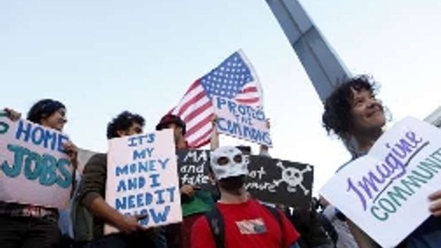 Undici persone sono state arrestate a Los Angeles durante una manifestazione di simpatizzanti del "movimento anti-Wall Street" che ha riunito circa 500 persone nel centro città. Gli undici arrestati, cinque donne e sei uomini, si erano introdotti nella hall di una succursale della Bank of America. Sono già stati rilasciati dietro una cauzione di cinquemila dollari.