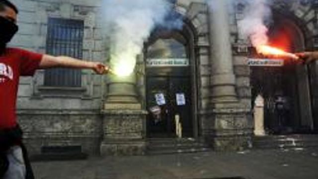 Terminata a Roma la manifestazione degli studenti che ha visto sfilare per le vie della Capitale oltre 2mila giovani. In tutta Italia sono state oltre 90 le città nelle quali gli studenti sono scesi in piazza contro "lo smantellamento della scuola pubblica". Momenti di tensione a Roma e Milano, dove sono stati lanciate uova e vernice contro le vetrine di diverse banche, al grido di "noi la vostra crisi non la paghiamo".