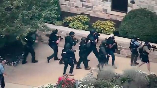 Un video della sparatoria, pubblicato sui social media, ha mostrato persone in preda al panico che fuggono da un evento fuori dalle residenze degli studenti. Nel filmato si sono viste diverse sedie bianche rovesciate mentre decine di persone cercavano di mettersi in salvo.