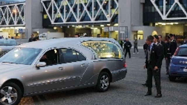 Lui, Marco, e' stato mostrato alla lenta processione, attraverso una lastra di vetro. Capelli sciolti, una maglietta e un paio di jeans, sulle mani i segni della terribile caduta che lo hanno strappato per sempre, nella lontana Malesia, al mondo delle corse e alla vita. Dietro al feretro, sul palcoscenico, due moto: quella con la quale Simoncelli aveva vinto il mondiale 250 e che teneva in camera da letto, poi quella con cui correva nel MotoGp.