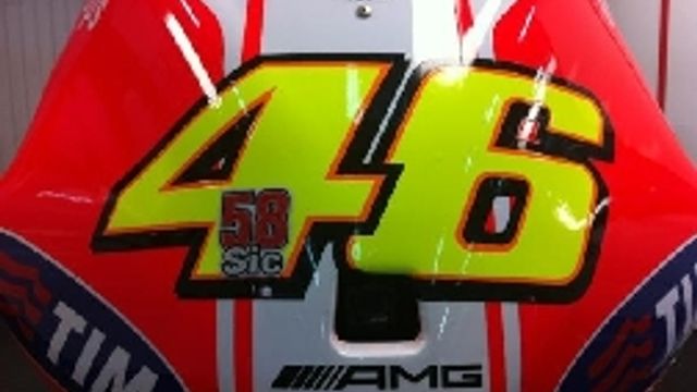 Valentino Rossi è entrato nella notte nel box per attaccare il suo tributo a Marco sulla sua moto. SuperVale ha poi deciso di usare anche un casco speciale, probabilmente una replica di quello usato in gara da Marco Simoncelli, che dovrebbe essere usato già nelle prove ufficiali a Valencia.
