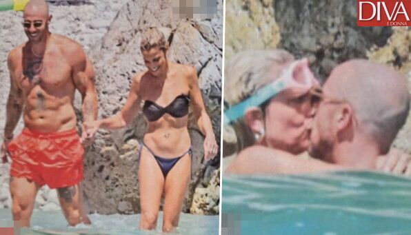 Micaela Ramazzotti, 46 anni, e Claudio Pallitto, 40, mostrano fisici scolpiti e grande sintonia. Lei in bikini blu, lui in boxer corallo si tengono per mano quando entrano in acqua sorridenti e felici. Si scambiano baci e coccole tra le onde e quando fanno ritorno sul lettino scattano le acrobazie ad alto tasso erotico.