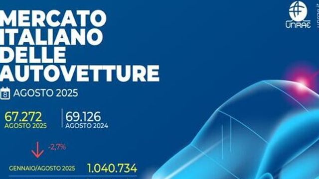 Ad agosto 2025 il mercato italiano dell’auto ha totalizzato 67.272 immatricolazioni, con una variazione negativa del 2,7% rispetto ad agosto 2024, che invece aveva totalizzato 69.126 unità. Nei primi otto mesi del 2025 i volumi complessivi si sono fermati a 1.040.734 unità, con un calo del 3,7% rispetto a quelli di gennaio-agosto 2024 (40.000 vetture in meno). Se confrontate con il 2019, le immatricolazioni del solo mese di agosto risultano in calo del 21,6% (equivalente a 285.000 unità in meno), mentre le immatricolazioni dei primi otto mesi dell’anno risultano inferiori del 15,8% rispetto ai volumi pre-pandemia.
