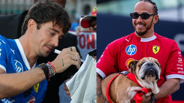© Ufficio stampa|Per tutto il weekend del Gp d'Italia, il team Ferrari indosserà la Monza Limited Edition Collection di Puma e Scuderia Ferrari HP (nella foto, i piloti della Rossa Charles Leclerc e Lewis Hamilton)
