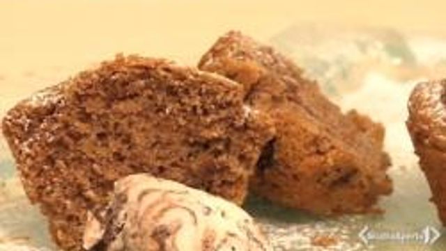 Ingredienti: 100 g. di farina di orzo bio, 150 ml di latte di riso, 50 g. di farina 00, 60 g. di zucchero di canna integrale, 50 g. di olio di mais italiano, 50 g. di cioccolato fondente 70 %, 1/2 bustina di lievito istantaneo, un cucchiaino d’orzo tostato.