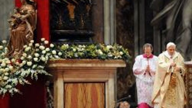 "Oggi il Natale è diventato una festa dei negozi, il cui luccichio abbagliante nasconde il mistero dell'umiltà di Dio, la quale ci invita all'umiltà e alla semplicità". E' il monito del Papa alla Messa di Natale in San Pietro. "In questo nostro tempo - ha detto Benedetto XVI pregando per la pace - fa' che i bastoni dell'aguzzino, i mantelli intrisi di sangue vengano bruciati, così che la Tua pace vinca in questo nostro mondo".