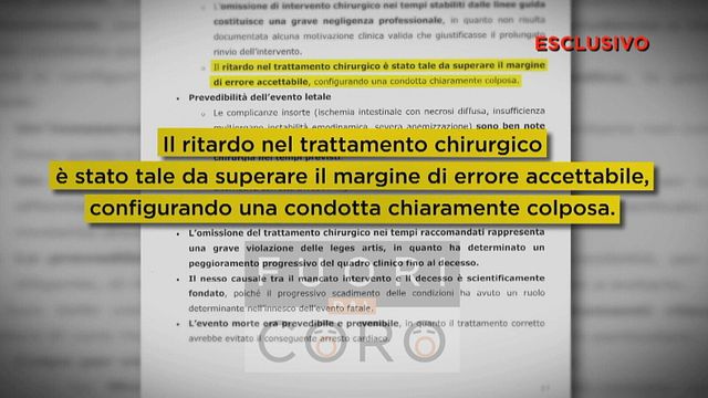 "Se la paziente fosse stata operata entro sei ore dall'insorgenza dei sintomi, si sarebbe evitata l’ischemia intestinale e di conseguenza la diffusa necrosi" che, il 6 marzo, ha portato al decesso di Cristina Pagliarulo. Questo è quanto si legge nel referto dell'autopsia, mostrato in esclusiva a Fuori dal Coro. E ancora: "Il ritardo nel trattamento chirurgico è stato tale da superare il margine di errore accettabile, configurando una condanna chiaramente colposa [...]. Il nesso causale tra il mancato intervento e il decesso è scientificamente fondato".