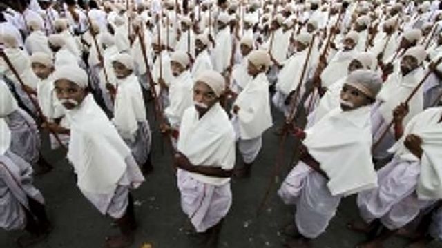 Un corteo di 485 bambini travestiti da Mahatma Gandhi ha sfilato per le vie di Kolkata (ex Calcutta), in occasione del 64esimo anniversario della morte dell'apostolo della pace, entrando nei Guinness dei Primati. Con il tipico telo bianco intorno ai fianchi, gli occhialini tondi e il bastone di bambù, i "baby Mahatma" hanno ricordato la famosa Marcia del Sale. Il precedente record apparteneva a un gruppo di 255 studenti.