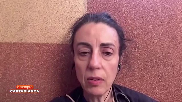 In collegamento da Gaza, una dottoressa volontaria racconta a "È Sempre Cartabianca" la sua testimonianza sul campo dall'ospedale Nasser. "C'è un ospedale tenda sotto di me e in lontananza stanno costruendo una specie di ospedale da campo con cinque reparti, questi invece sono gli edifici rimasti intorno, tutti senza finestre" dice inquadrando la situazione attorno a sé.