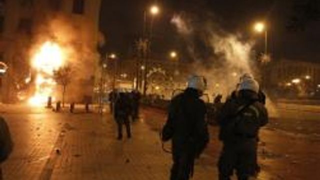 Battaglie corpo a corpo nella via dello shopping Ermou, fuochi in terra ovunque, scontri nella parte di Syntagma più lontana dal parlamento, fermate dei bus date alle fiamme in via Panepistimiou, bloccata da ogni sorte di oggetto, poi dato alle fiamme. I feriti, secondo fonti ospedaliere, sono stati una sessantina, tra dimostranti ed agenti. Non è stato precisato il numero degli arrestati, si parla di una quarantina di persone. Poi, gli incendi, mentre continuavano gli scontri nel centro cittadino.