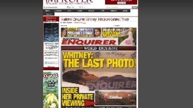 "Whitney: L'ultima foto". Così il tabloid americano National Enquirer titola la prima pagina con uno scatto shock. La fotografia ritrae la Houston nella sua bara dorata, vestita con un abito viola, orecchini e una spilla di diamanti. Il giornale dichiara anche che la cantante aveva addosso gioielli del valore di 500mila dollari e pantofole d'oro ai piedi. Sul Web scoppiano le proteste dei fan.
