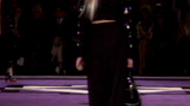 Bellissimo lo scamiciato, evoluzione di un cappotto, nero, impreziosito da intarsi. Cade morbido, è stretto sotto il seno da una cinta (anch'essa di provenienza dai capispalla), e si apre un poco a portafoglio.