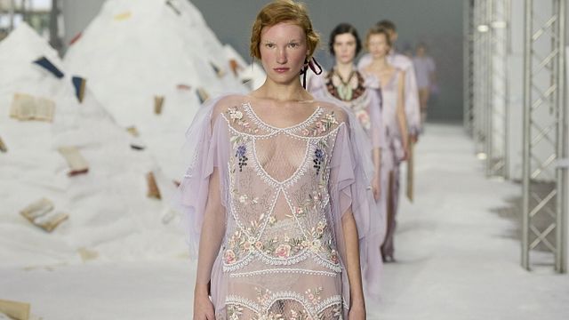 Lo show, ambientato nell'età vittoriana, prende vita da una inusuale comunità di amici intellettuali - una sorta di circolo Bloomsbury -, accomunata dall'insofferenza verso le etichette imposte dalla società. La scena si sposta poi ad Alghero, dove lo scrittore, poeta e drammaturgo britannico D.H. Lawrence e sua moglie Frieda trovano "un vero paradiso terrestre". In passerella colori soffusi, delicati, sussurrati e morbidi: lilla, rosa, oro, ecrù, viola, cioccolato, bronzo, nero stinto, sabbia, rame. Le fantasie vanno dai quadri check alle righe jacquard, dai damaschi al pizzo, dalle pellicce ecologiche ai pois, al gessato. E poi fiori, volant, drappeggi, pieghe, intarsi e patch. Le linee si incastrano e si sovrappongono. Sono scivolate e suadenti o androgine e comunque affascinanti. Grandi vestaglie degne di una diva di Hollywood alla Gloria Swanson e da uomo alla Hercule Poirot di Agatha Christie. Tailleur maschili e abiti da gran soirée. Abiti da cocktail e completi pigiama. Grandi caban e giacchine sagomate. Pelle, jeans, maglieria che sembra un ricamo e pezzi ricamati a filo preziosissimi che sembrano disegnati ad acquarello.
