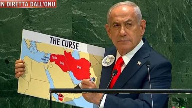 "L'anno scorso da questo podio ho mostrato questa mappa del terrore dell'Iran che sta rapidamente sviluppando un programma nucleare e di missili balistici. Questi non solo rischiano di distruggere Israele ma mettono in pericolo gli Usa". Lo ha detto il premier israeliano Benjamin Netanyahu all'inizio del suo discorso all'Assemblea Generale Onu. Quindi ha ricordato i successi di Israele contro l'Iran, gli Houthi in Yemen, in Siria e contro i leader di Hamas a Gaza.