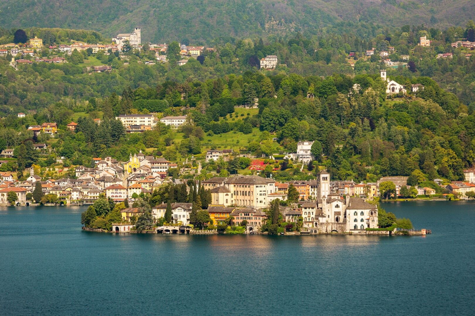 ISOLA SAN GIULIO, BELLEZZA SENZA TEMPO - Da piazza Motta di Orta San Giulio si prende il traghetto per l’isola San Giulio, dove si approda dopo una decina di minuti di traversata. Regno del silenzio e della pace, da tempo immemorabile cuore religioso del lago e meta di pellegrini e viandanti, è ancor oggi sede di un convento di monache di clausura. La piccola isola (il suo perimetro è di soli 700 m) ha forma ovale, e si visita seguendone l’unica strada, che la percorre ad anello. Antichissima è la sua chiesa, a cui si accede salendo lungo una scalinata coperta: la leggenda vuole che a fondarla sia stato lo stesso San Giulio nel IV sec. Ricostruita nel IX sec., ampliata e riadattata a più riprese, è decorata con affreschi settecenteschi e conserva al suo interno un prezioso pulpito medievale in marmo nero, scolpito verso l’XI sec., capolavoro dell’arte romanica. Nella cripta è sepolto San Giulio, la cui tomba era venerata fin dall’antichità. Attorno alla chiesa si trovano il palazzo vescovile, l’abbazia benedettina femminile Mater Ecclesiae e una serie di edifici costruiti fra il XVI e il XIX sec.