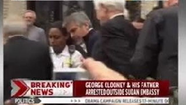 La polizia di Washington ha arrestato George Clooney durante una manifestazione di protesta inscenata di fronte all'ambasciata del Sudan. Mercoledì l'attore aveva parlato di fronte al Congresso di una "campagna di morte" in corso nel Paese africano. Clooney, che ha ottenuto che Barack Obama faccia pressioni sul presidente cinese Hu Jintao (sostenitore del sudanese Omar el Bashir), è stato rilasciato poche ore dopo.