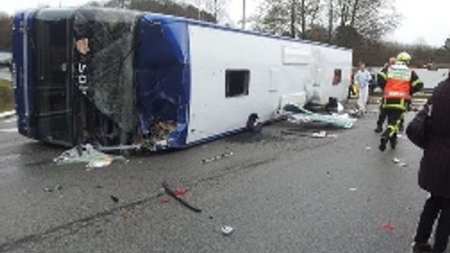 Il bus si è ribaltato provocando il "ferimento grave" di quattro persone, rimaste tra le lamiere, fra cui un bambino di 4 anni a cui è stata amputata una mano. Tutti sono stati portati in elicottero all'ospedale di Quimper. Altri 22 passeggeri sono feriti in modo leggero. Le operazioni di soccorso sono terminate nel tardo pomeriggio.