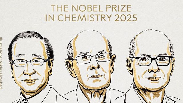 Il Premio Nobel per la Chimica 2025 è stato assegnato a Susumu Kitagawa, Richard Robson e Omar Yaghi per i loro studi su nuovi materiali e "per lo sviluppo di strutture metallo-organiche". Per l'Accademia svedese, i tre scienziati "hanno sviluppato un nuovo tipo di architettura molecolare. Le strutture da loro sviluppate, strutture metallo-organiche, contengono grandi cavità in cui le molecole possono fluire dentro e fuori. I ricercatori le hanno utilizzate per raccogliere acqua dall'aria del deserto, estrarre inquinanti da risorse idriche, catturare l'anidride carbonica e immagazzinare idrogeno".