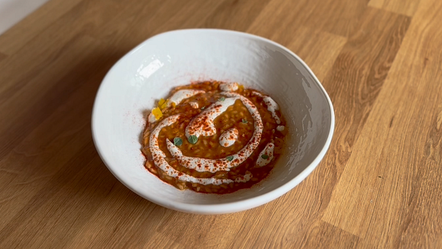 Terminate con una cucchiaiata di panna acida, una spolverata di paprika dolce e maggiorana fresca.