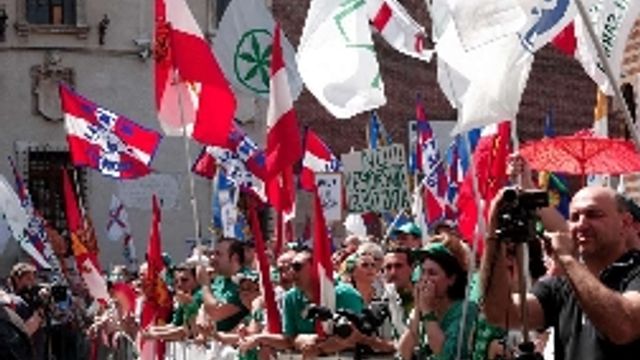 Una delegazione di sindaci della Lega, guidata dal primo cittadino di Verona Flavio Tosi, ha consegnato per protesta contro la politica del governo le proprie fasce tricolori alla Prefettura di Verona. Lo aveva annunciato dal palco lo stesso Tosi, indicando, tra l'altro, che gli stipendi del governo "sono la vera spesa improduttiva".