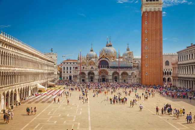 VENEZIA, PIAZZA SAN MARCO - E' una delle piazze più famose del mondo e scrigno di secoli di arte e storia Su piazza San Marco si affacciano alcuni tra i più celebri monumenti di Venezia, tra cui la Basilica di San Marco, Palazzo Ducale, la Torre dell’Orologio e il Campanile. Napoleone l’ha definita “il salotto d’Europa”.