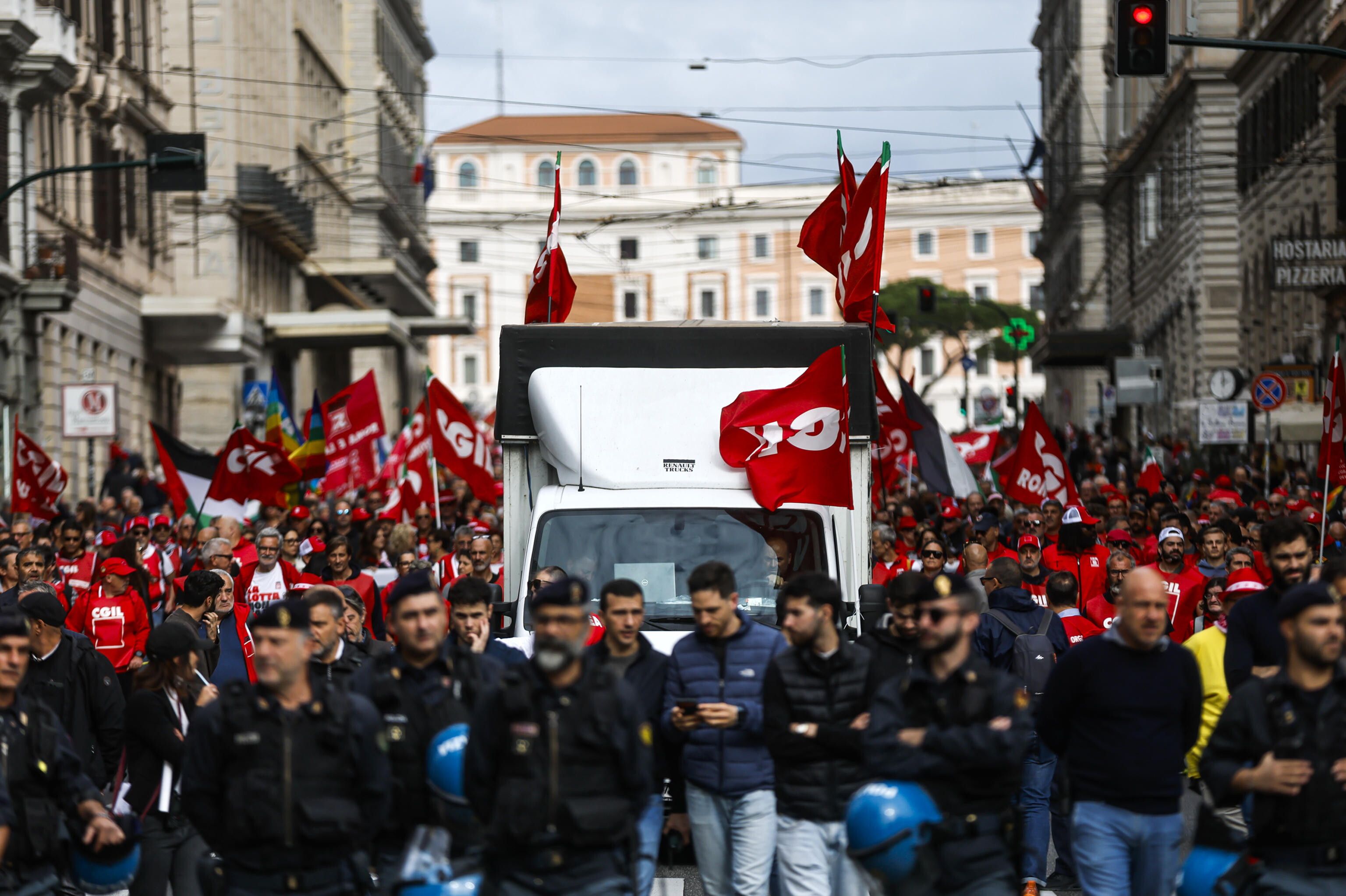 "Democrazia al lavoro", con questo slogan, sulle note di Imagine di John Lennon, ha preso il via il corteo della Cgil a Roma. La mobilitazione è stata organizzata per protestare contro la Manovra finanziaria del governo Meloni. I manifestanti hanno sfilato da piazza della Repubblica fino a San Giovanni. "Siamo oltre 200mila", hanno annunciato gli organizzatori. Tante le bandiere rosse che portano la sigla del sindacato. A colorare il corteo anche le diverse bandiere palestinesi e della pace. A reggere lo striscione di testa, il segretario generale Maurizio Landini.