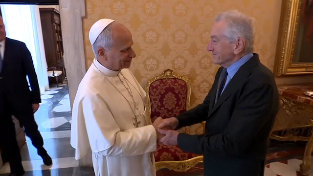 "Good morning! È un piacere conoscerla!", ha affermato il Santo Padre, come riporta Vatican News. "Anche per me", la risposta dell'attore due volte premio Oscar. De Niro ha fatto tappa in Vaticano in mattinata e si è intrattenuto con il Pontefice per un breve saluto. Al termine dell'incontro, Leone XIV ha donato un rosario a Robert De Niro.