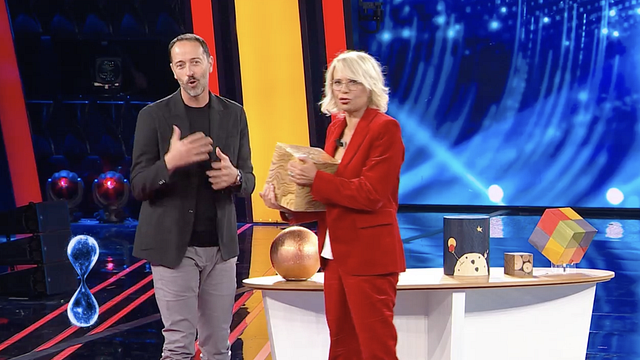 "Durano tantissimo nel tempo, lo scandiscono" dice l'artigiano provando a fornire alcuni indizi rivelatori sulle urne cinerarie che Paolo Bonolis coglie subito arrivando a dare la soluzione. I giudici stupiti chiedono come mai una di queste urne sia leggermente distaccata dalle altre e l'artigiano originario di Caravaggio risponde: "Le ho realizzate pensandole come un complemento d'arredo, per esempio nel realizzare quest'urna che vedete mi sono ispirato a un abito che aveva Sabrina Ferilli in una puntata" dice mostrando l'oggetto con su disegnata una rosa rossa.