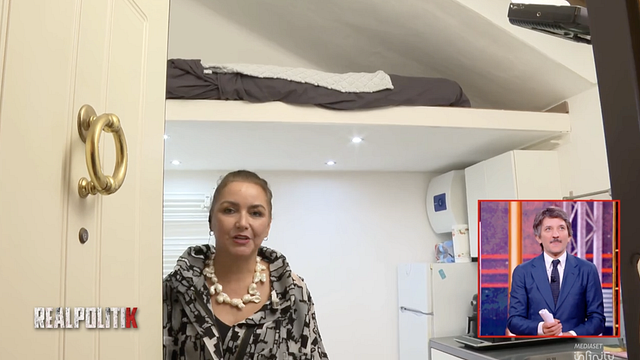 In collegamento con "Realpolitik" l'architetta Martina Margaria illustra un mini appartamento di 15mq, solo 13mq calpestabili, in una zona semi centrale di Milano che costerebbe quasi 800 euro al mese più circa cinquanta euro di spese condominiali. "Appartamento compatto e funzionale, c'è tutto dalla parte impiantistica a tutta l'area della cucina, poi l'angolo living con divano, libreria e armadio" dice mostrando la mini casa.