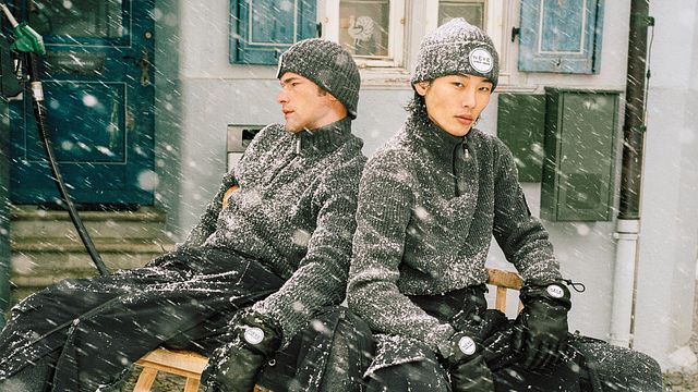 La linea maschile evoca un’eleganza sportiva dal carattere deciso: completi da sci in tessuto metallizzato, piumini, blouson e cappotti in shearling, tute e pantaloni idrorepellenti con dettagli catarifrangenti. I grandi pullover donano profondità materica, accompagnati da una palette di grigi e neri. A completare l’offerta, accessori coordinati – cappelli, passamontagna, sciarpe, guanti, scarponcini e capienti borse di montone – per un total look raffinato e autenticamente montano.