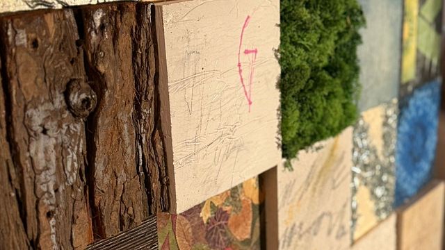 Come detto, sono due le opere portate da Lorenzo Marini: Sustainable Type e Siamo tutti Amazzonia. La prima è un alfabeto dove la materia sostituisce la lettera. Si tratta di un’opera costruita con i materiali della terra: A di Amazzonia, B di Bamboo, C di Cork, E di Eggshell, G di Gypsum, H di herbs, I di incense, J di jeans, K di kiwi, L di Leaves e così via. Nell’opera la natura diventa linguaggio che omaggia la sua bellezza ma anche la sua fragilità. La seconda opera, invece, appartiene alla serie dei black hole esposti all’ultima Biennale di Venezia. In questo lavoro il buco nero è il centro della materia, dove le lettere vengono attratte da una forza oscura. Così l’artista trasforma l’alfabeto in un campo gravitazionale dell’emergenza ecologica. Il titolo è dunque un monito e una dichiarazione di appartenenza: Siamo tutti Amazzonia, perché la perdita della foresta, del respiro e della parola naturale riguarda ognuno di noi.