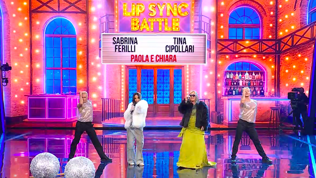 L’interpretazione più memorabile è quella firmata da Tina Cipollari e Sabrina Ferilli, travestite da Paola e Chiara nella loro performance sanremese di "Furore": costumi scintillanti, movimenti sincronizzati, energia travolgente e quell’irresistibile complicità che da sempre contraddistingue il duo. Autentico delirio in studio.