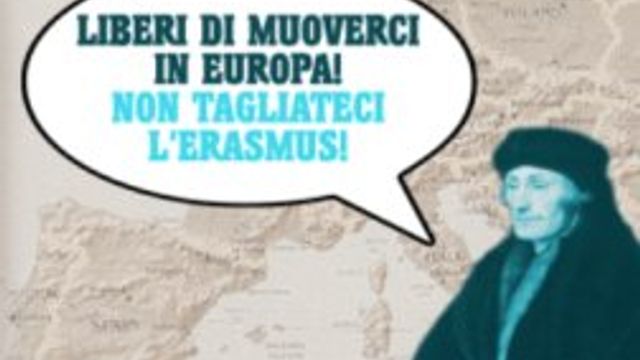 Una petizione fotografica, alla quale tutti gli studenti possono partecipare. Questa è l’originale forma di protesta che gli studenti italiani in Erasmus stanno mettendo in atto insieme a coloro che dovranno partire il prossimo anno. "Liberi di muoverci in Europa, Non tagliateci l'Erasmus", uno slogan che risuona come un grido di aiuto che centinaia di ragazzi e ragazze lanciano verso i governi le istituzioni europee al fine di salvare il futuro del progetto e quindi la possibilità di continuare a partire in futuro.