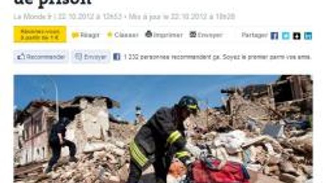 La sentenza con la quale sette scienziati sono stati condannati per non aver allertato la popolazione dell'Aquila prima del terremoto del 2009 in pochi minuti è rimbalzata sui media di tutto il mondo.