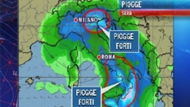 Oggi il maltempo inizierà a colpire il Paese a partire dal Nordovest, versante tirrenico e Sicilia. Piogge e rovesci si estenderanno a tutte le regioni entro il pomeriggio e saranno anche forti su Liguria, regioni tirreniche, Sicilia, Calabria, Salento, vento e Friuli Venezia Giulia. Nelle regioni citate in qualche caso si tratterà di temporali, con il rischio di locali nubifragi e flash flood (alluvioni lampo). Forte pioggia nel pomeriggio anche a Roma.